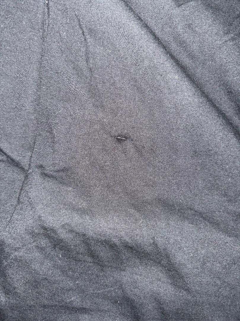 The shirt is great but it had an 1 1/2 to 2 inch slice in the front that went all the way through to the bac. The package that it came in had the same on the front. The damage probably happened in shipping.